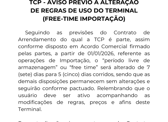 Comunicado TCP – Atualização sobre Entrada de Caminhões no Terminal